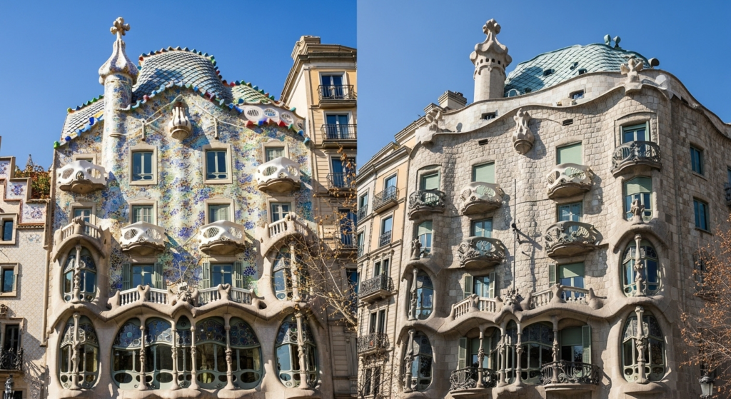Both buildings showcase Gaudí’s creative vision with unusual shapes, colorful facades, and artistic interiors.